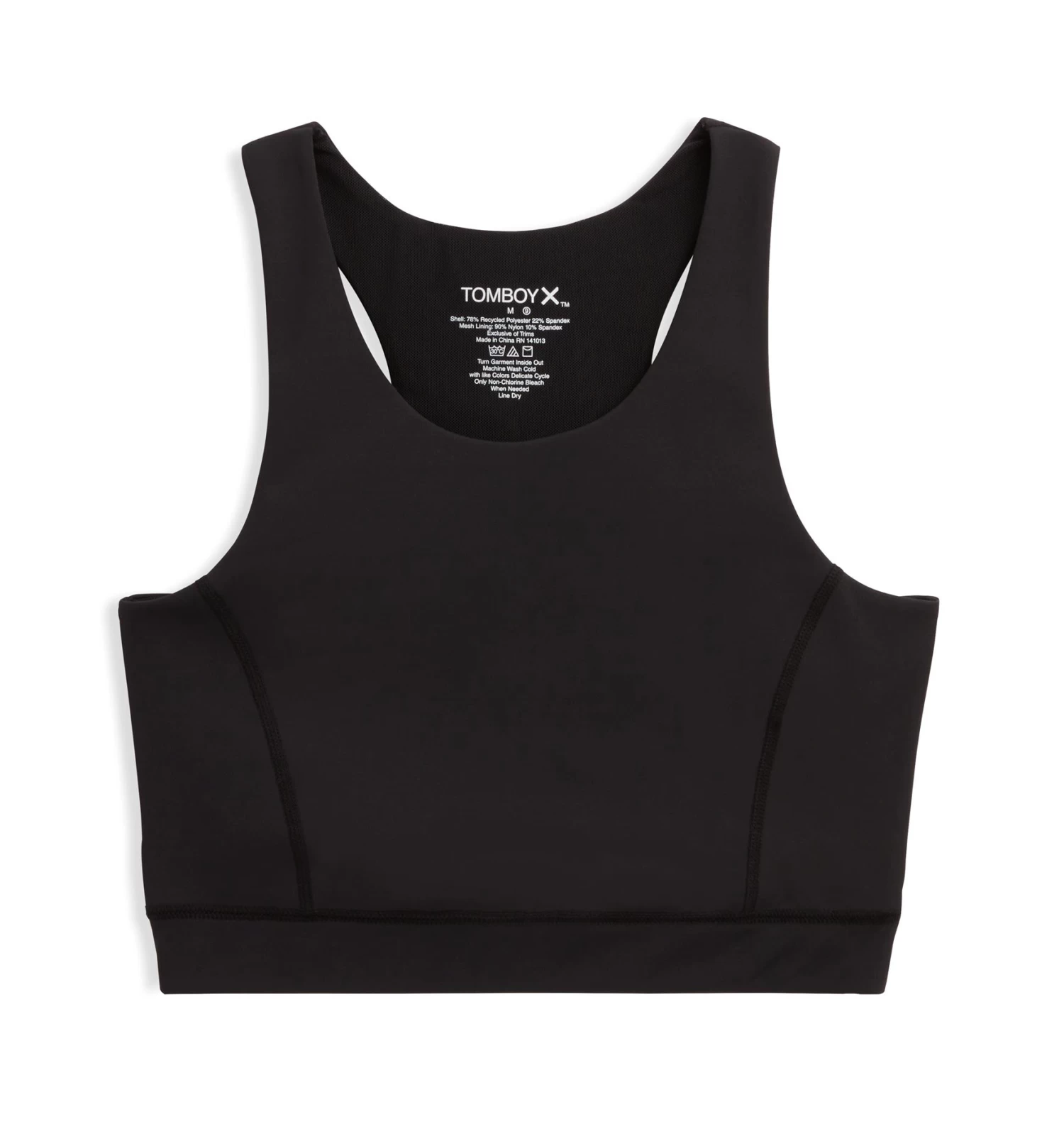 - Body: 78% recycled polyester, 22% spandex